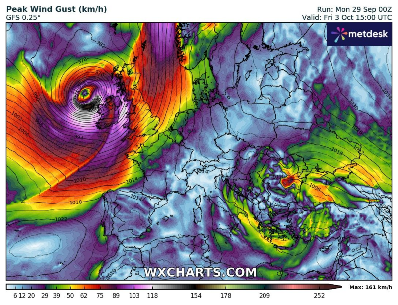 Optie 1 : Humbreto trekt naar de Noordelijke IJszee en wordt daar een groot normaal sturend laag, en brengt de herfst wat dieper naar Europa toe met toenemende zware stormkansen, temperaturen beneden of rondt normaal