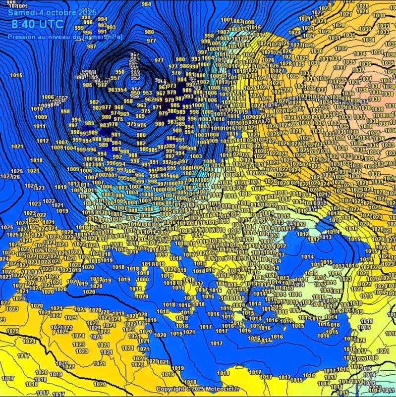 Ex-Humberto, nu ook wel Storm Amy genaamd door het Ierse weerbedrijf. Licht nu met haar, kern voor de Noorse west-Zuidwest kust, en kanteld langzaam.