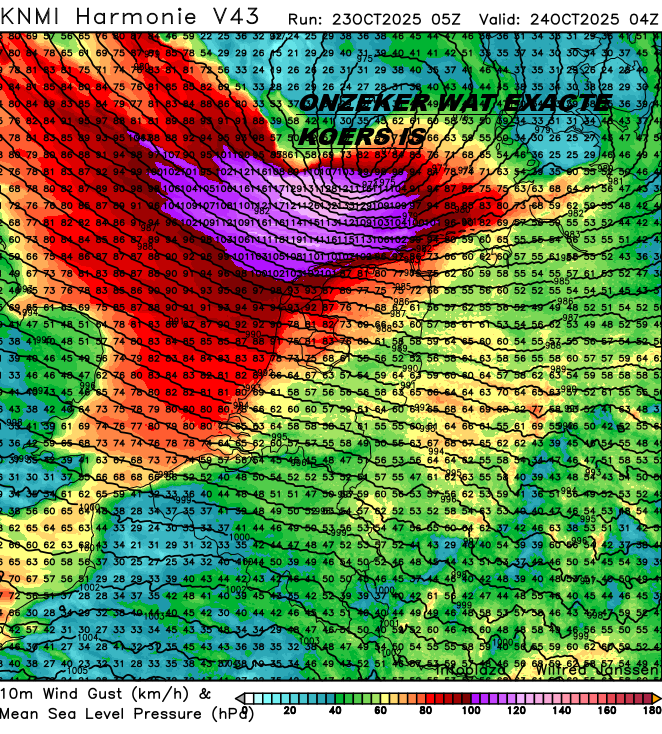 in de loop van de avond gaat het ook in het Noorden hard waaien met windstoten van 85 a 100 kmh, en direct of op de wadden varieren de weermodellen rond 115-145 kmh.